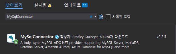 Nuget 에서 MySqlConnector 를 설치 합니다.